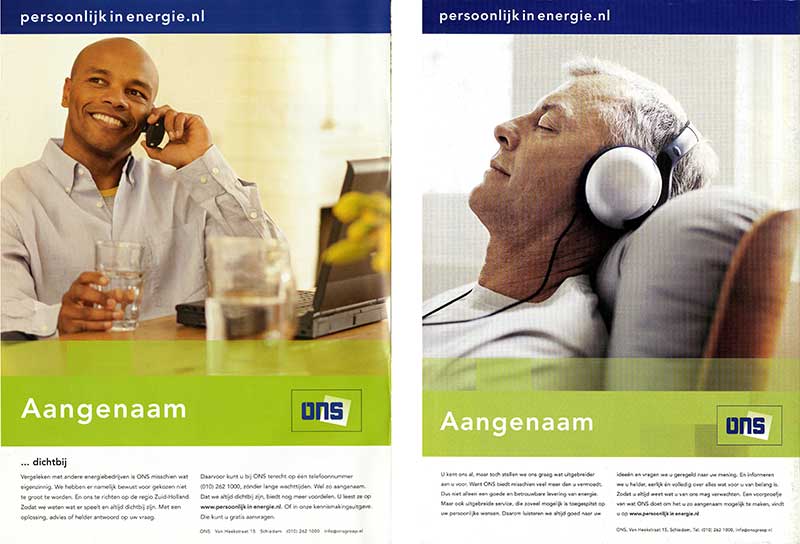 Energiebedrijf ONS voert campagne voor groene stroom, besparingstips, het vastzetten van de leveringsprijs en hun goede service.